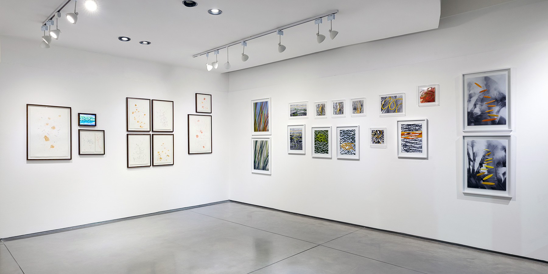 Marisa Gill deja que el aire dibuje. Sus litografías y técnicas mixtas capturan el movimiento como vibración suspendida. Líneas rápidas, efímeras, casi sonoras, atraviesan hojas que flotan sin llegar al suelo, como si estuvieran atrapadas en un viento centrífugo de un otoño cualquiera.