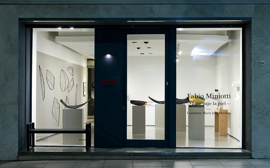Los yesos ocultan estas estructuras con capa sobre capa de tela embadurnada. Definen una forma externa que absorbe la geometría, que se torna orgánica y, como en el cuerpo humano, es su órgano más extenso: la piel. La piel de la escultura resiente y expresa todo el pasado de la obra, su esqueleto y la impronta del modelado. En su estado bronce, la pieza se sofistica aún más. Exhibe sus cualidades mediadas por un presente absoluto, la pátina final: texturas, poros, oquedades que ese velo fino trabajado con ácidos y aceites revela o encubre. El impresionismo dio la lección de explorar la índole de la luz sobre la piel de los objetos. Así, los bronces negros, profundos, llevan el ojo hacia adentro a cada palmo de una superficie modulada, la carne del hueso escultórico. Sorpresivamente, un pequeño plano perpendicular refleja y exhibe el sol en el material revelando contrastes de tersura y aspereza, los opuestos que ligan la vista y el tacto. La cualidad háptica de la obra de Miniotti celebra la condición propia de la escultura, la de ser un cuerpo simbólico que se ofrece a un cuerpo real.